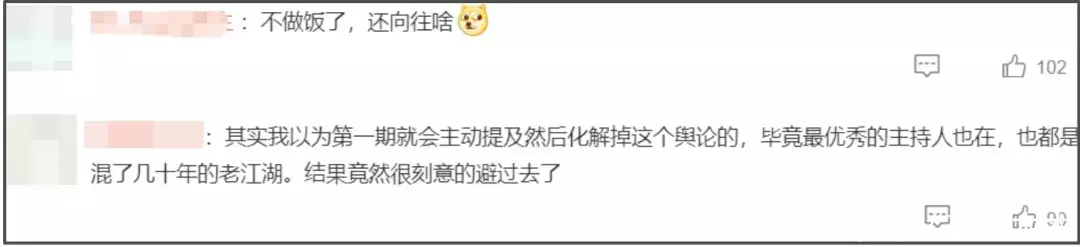 更过分的是,有人看出来了黄磊和何炅的敷衍,一个优秀的主持人,一个混了几十年的老江湖,以为他们第一期就会主动提及并化解掉的舆论,竟然很刻意避过去了,真不把普通观众当回事啊!