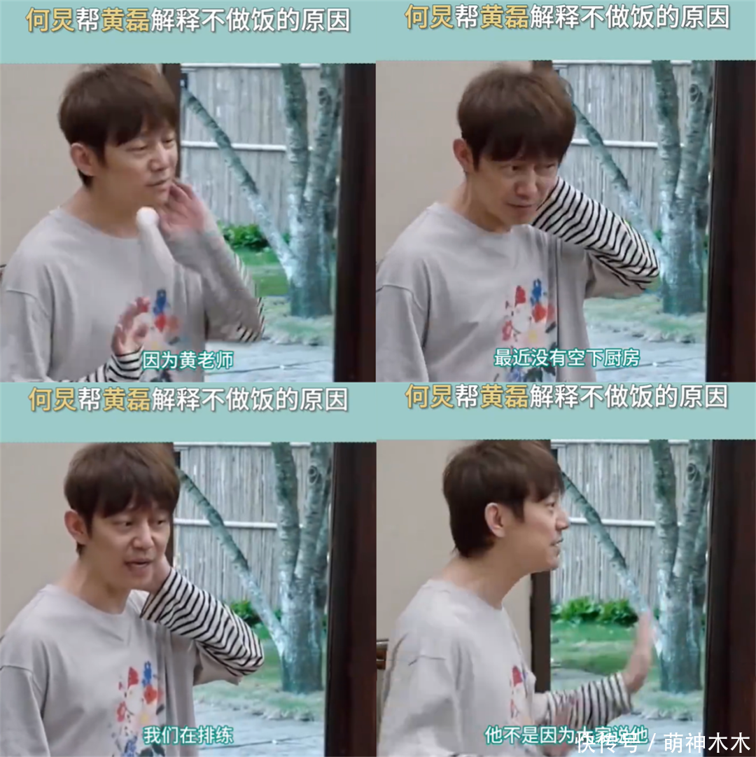 何炅还超绝刻意对着嘉宾表示,黄磊不做饭不是因为别人说他做饭不好吃,是话剧排练太忙了。
