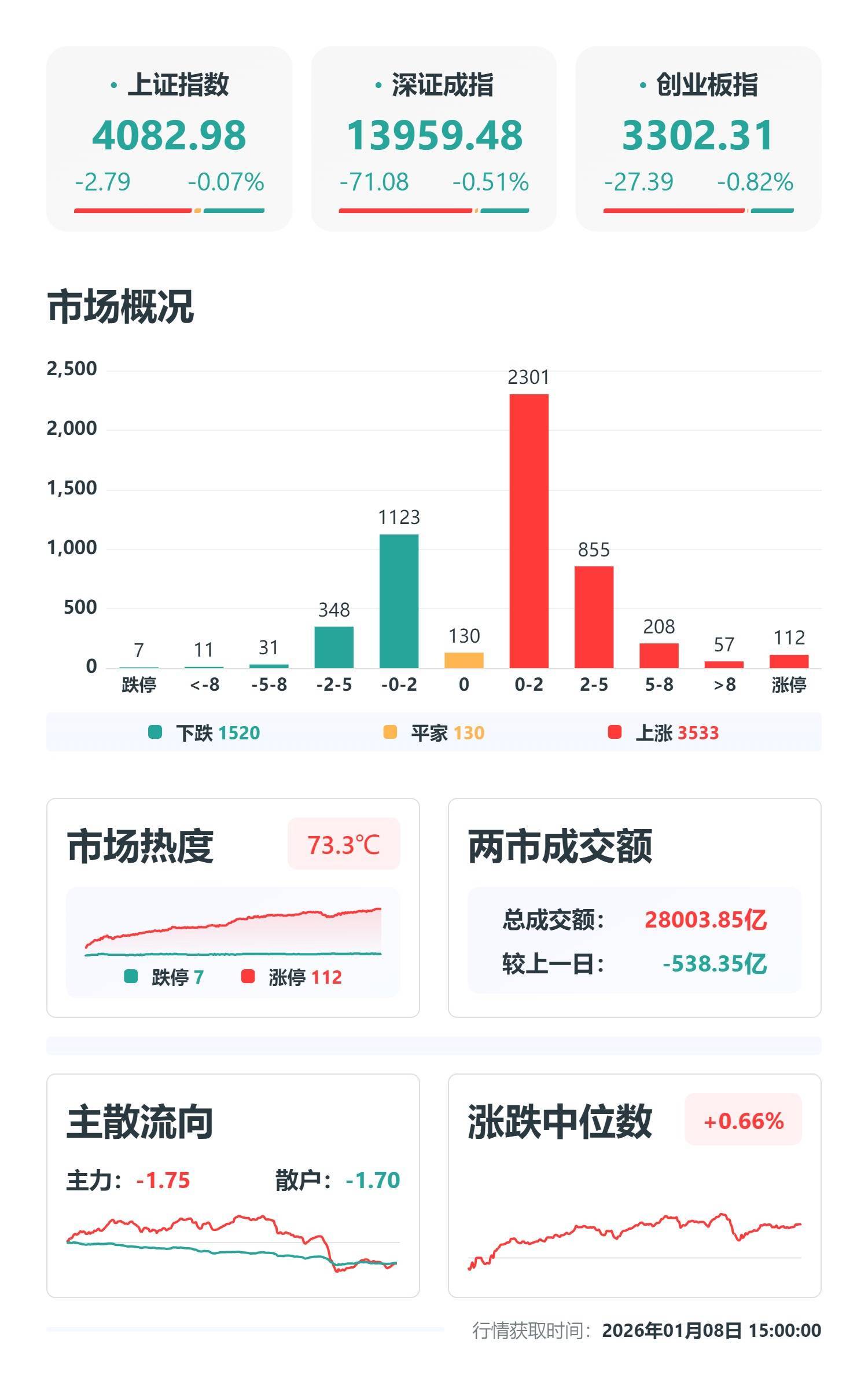 周四股涨柜,A股15连阳,不过今日实际小幅收跌。根据交易所数据,上证指数跌0.07%报4082.98点,深证成指跌0.51%,创业板指跌0.82%,沪深300跌0.82%,科创50涨0.82%。